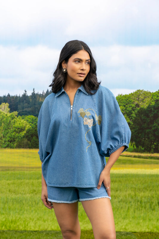 AURA ZIPPER - BOTAN - DENIM SHIRT LIGHT