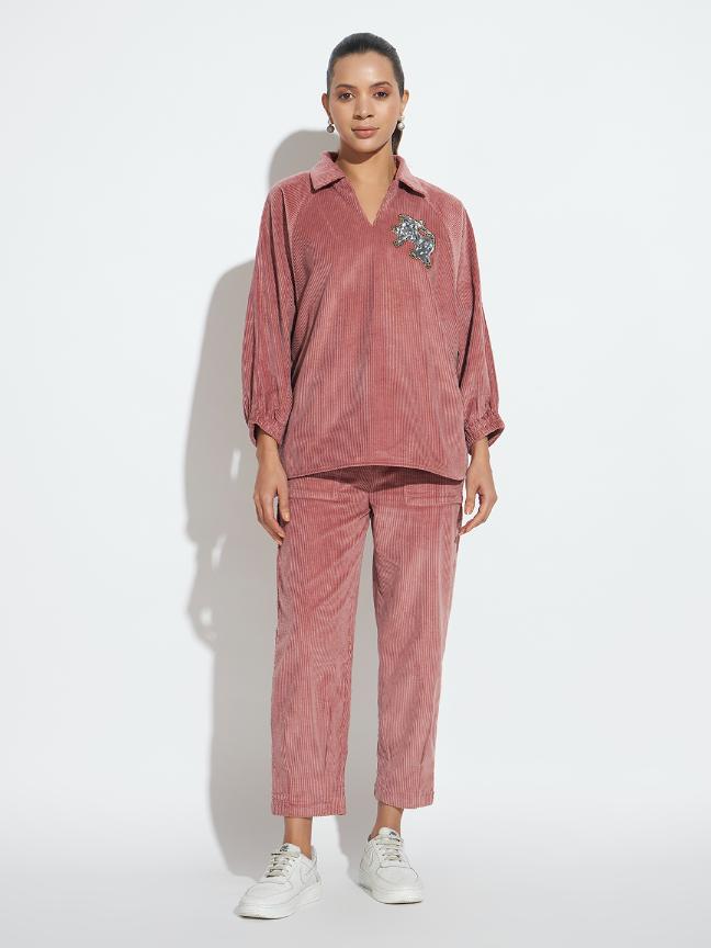 Elegant, structured, and effortlessly versatile these embroidered corduroy pants are crafted to offer both comfort and refined style. Made from premium cotton corduroy, the fabric provides a plush, velvety hand-feel while maintaining durability and breathability, making it ideal for all-day wear. Tapered legs create a graceful, elongated effect, while the clean finish at the hem keeps the look polished and modern. These pants pair seamlessly with both structured tops and casual silhouettes making them a timeless, wardrobe-essential piece perfect for the confident woman who values comfort and craftsmanship.