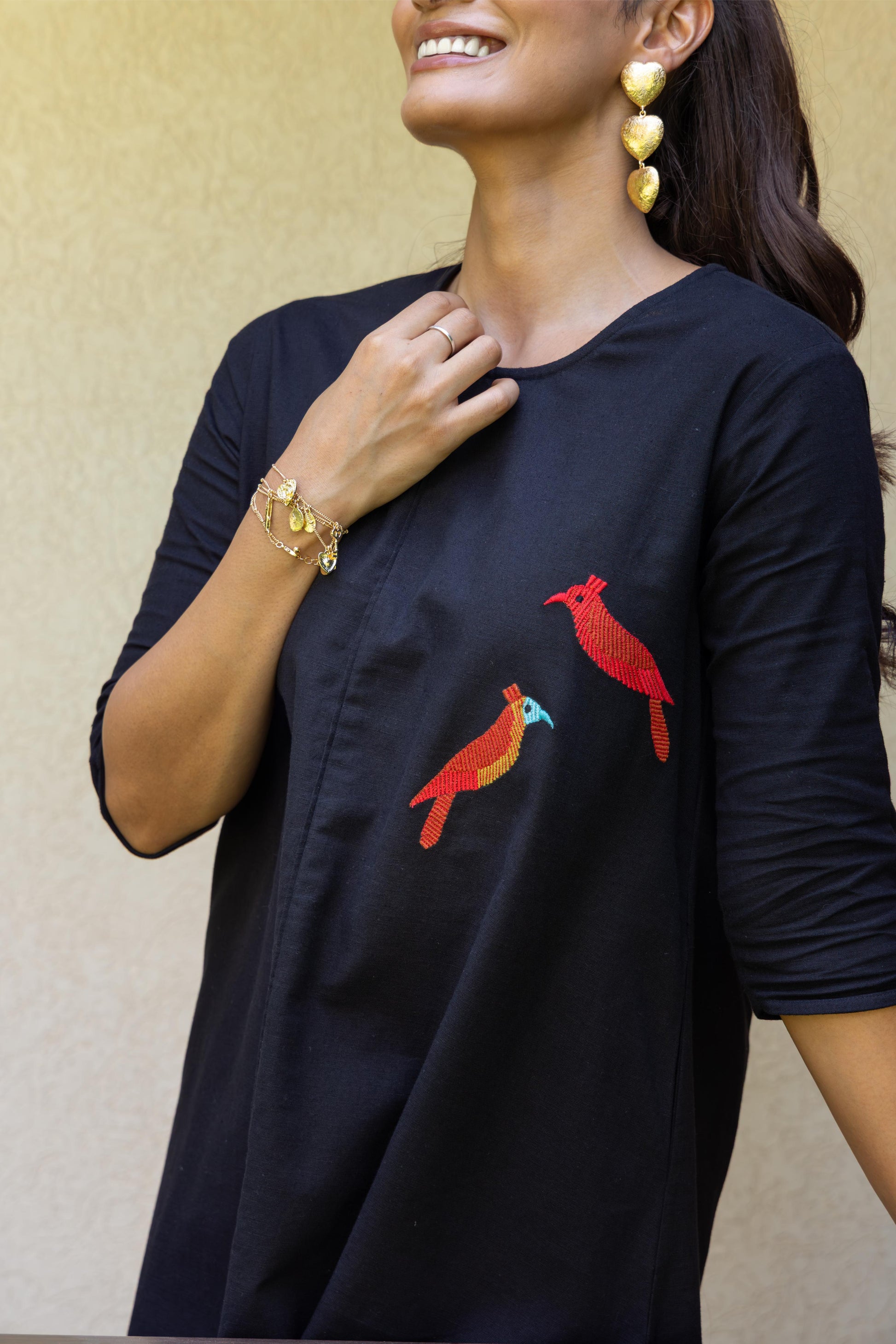 Nora Dhoti Pant Cord Set With Embroidery BLACK